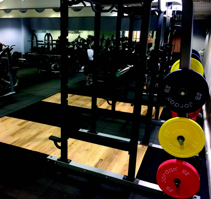 In the newly extended free weight area, a 40mm impact material was laid to reduce noise and vibration. The surface was specified in grey to complement the flooring scheme alongside it.