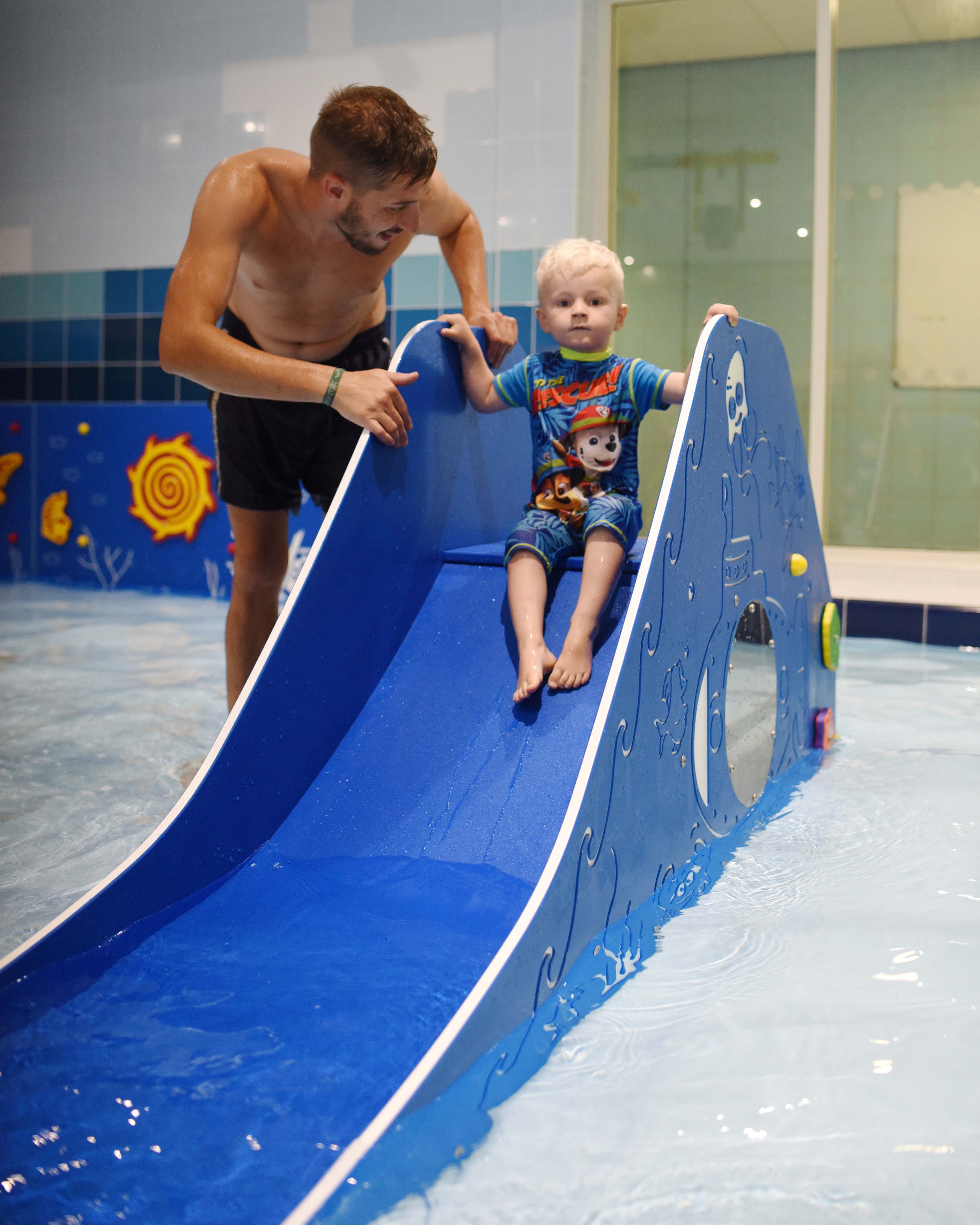 Designed for poolsides, shallow water or splash pads, these slides feature bright colours, tactile surfaces, moving elements and mirrors. They help younger children build water confidence, develop motor skills, and practice turn-taking, increasing their social skills while they play.