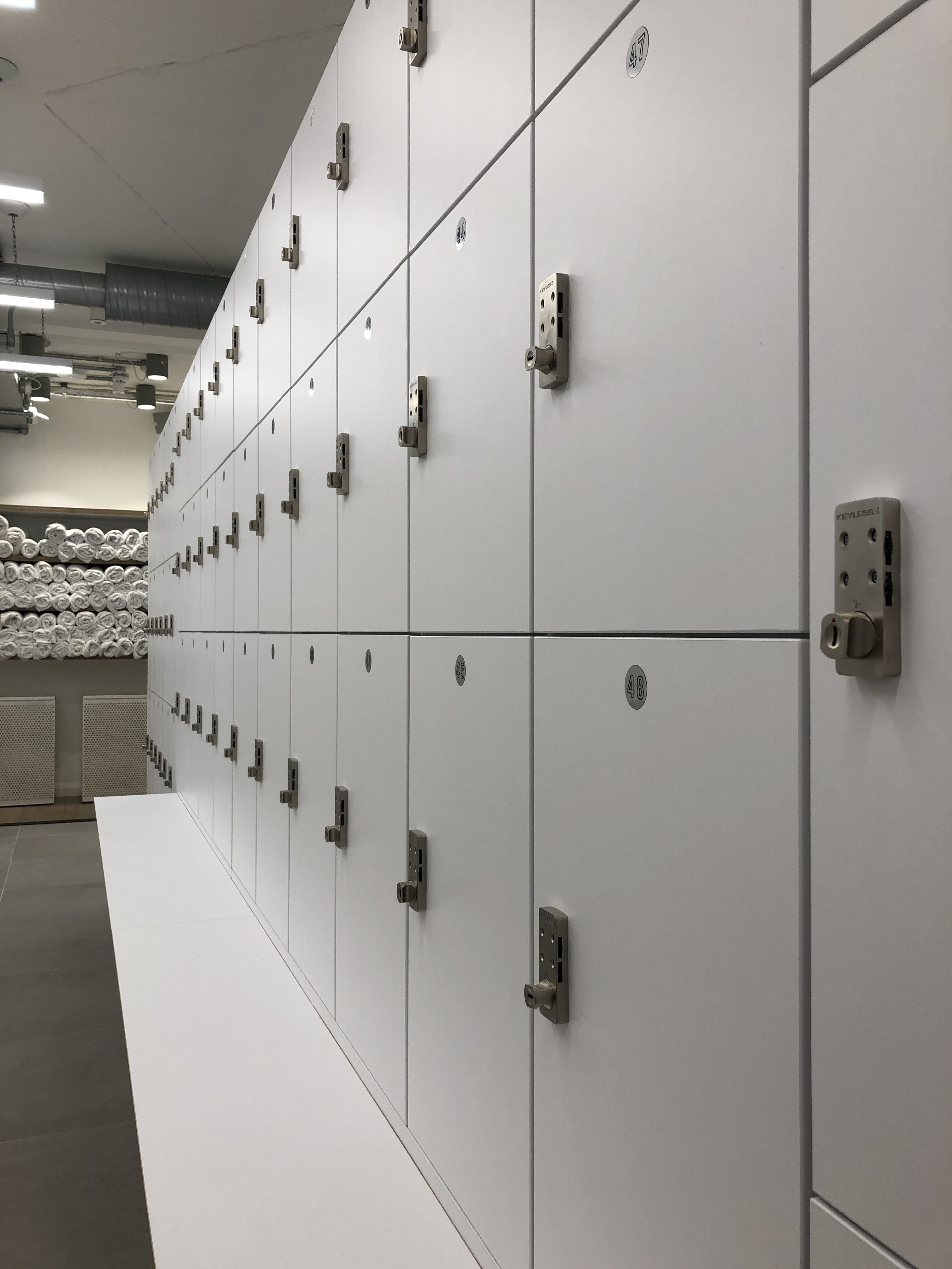 Psycle switched from digital keypad locks to mechanical combination ones for their latest lockers at Mortimer Street and Clapham. ”The digital keypad locks we used on previous sites needed too much technical resource ,” explains Hayley. “If we needed replacements, there was a long lead-in time from the manufacturer, which was unworkable. With the mechanical combination locks, there is nothing to go wrong.”