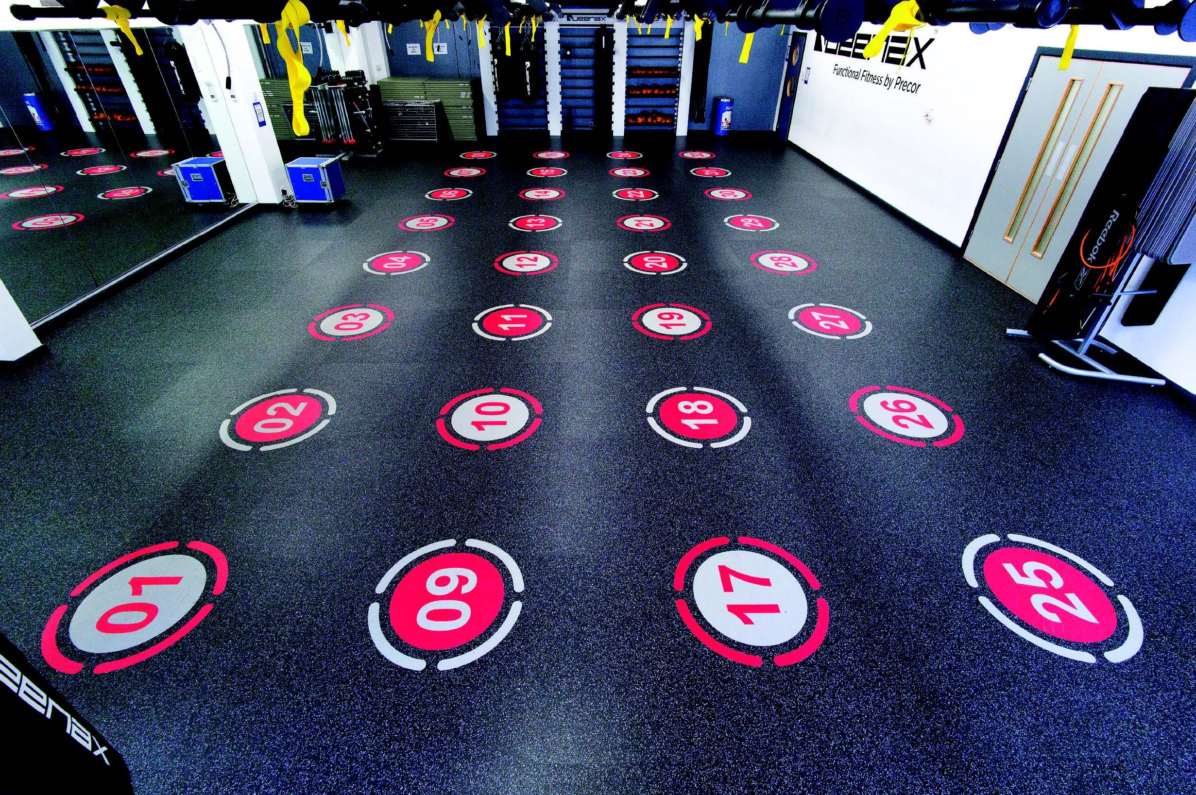 Xcite Livingston in West Lothian installed Neoflex Fitness Flooring under the Queenax Frame in their new functional training studio. Having invested in the world’s largest Queenax frame with 32 workout stations, Xcite was looking for a flooring solution that would capitalise on all the multifunctional benefits that the Queenax Frame offers, while also providing a suitable surface for freestyle training outside of guided classes. Xcite Leisure Centre chose 10mm Neoflex REPtiles with inlaid number markings to highlight the 32 new exercise stations and enrich the group class experience.
