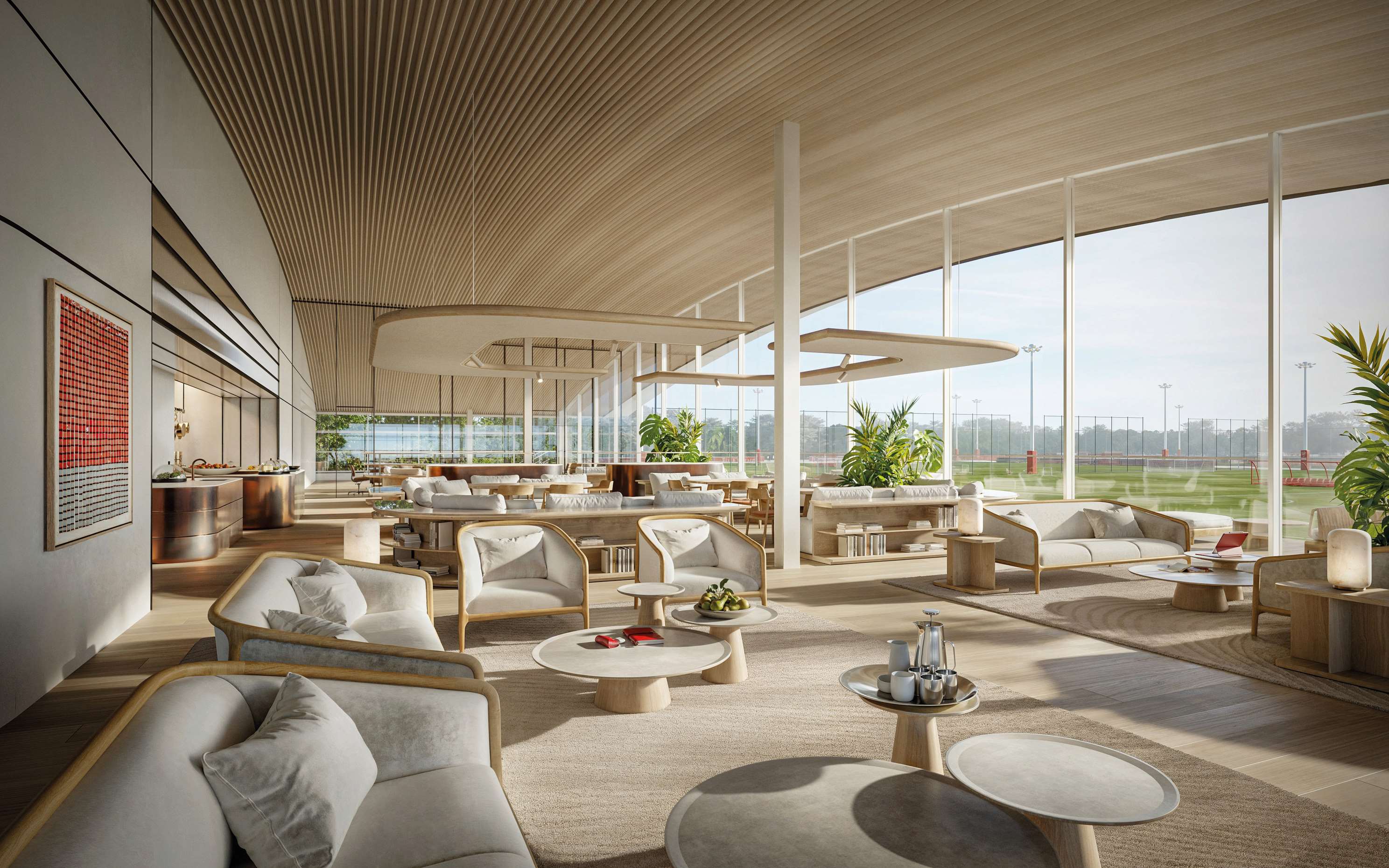 This includes the reshaping of Wembley Stadium and the design of the Lusail Stadium in Qatar – the centrepiece of the 2022 FIFA World Cup. Renders released by Foster + Partners show sandy-hued, open-plan spaces illuminated by floor-to-ceiling glazing and panoramic views of the pitches. The design includes use of natural materials and neutral colours, with areas filled with potted plants. Sir Jim Ratcliffe, co-owner of Manchester United, said: ‘We want to create a world class environment for our teams to win.