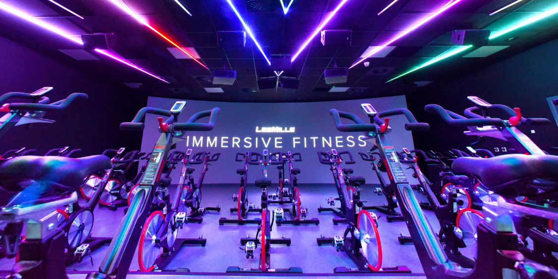 Following the successful delivery of Scotland’s first Immersive spin studio at the Mariner Centre back in January 2020, Alliance Leisure has completed a second studio at Grangemouth Sports Complex. Following practical completion of this project (procured through the UK Leisure Framework which is managed by Denbighshire Leisure), the new cycle studio has now opened its doors to the public. The space will utilise the latest virtual reality technology and programming to take riders of all abilities on a full immersive sensory adventure that will elevate the indoor cycling experience to a whole new level. The new studio will be larger than the studio at the Mariner Centre, and contains double the number of bikes to accommodate more riders. The bikes will be the latest iteration of the world renowned M3i Keiser bikes offering participants access to one of the most technologically advanced static bikes on the market. In this cinema-scale experience, the 3.1m tall screen will showcase digitally created worlds, which customers can cycle through, taking their 40-minute multi-peak cycling workout to another level. In addition to instructor-led classes, virtual classes are also being launched. This gives the client the ability to offer safe, effective and highly motivating classes throughout the day – even during times that are traditionally quiet, such as the afternoons. Individuals will simply hop on a bike and be taken through a full workout by a digital coach viewed on a large screen. Click here for more information about Les Mill immersive fitness.