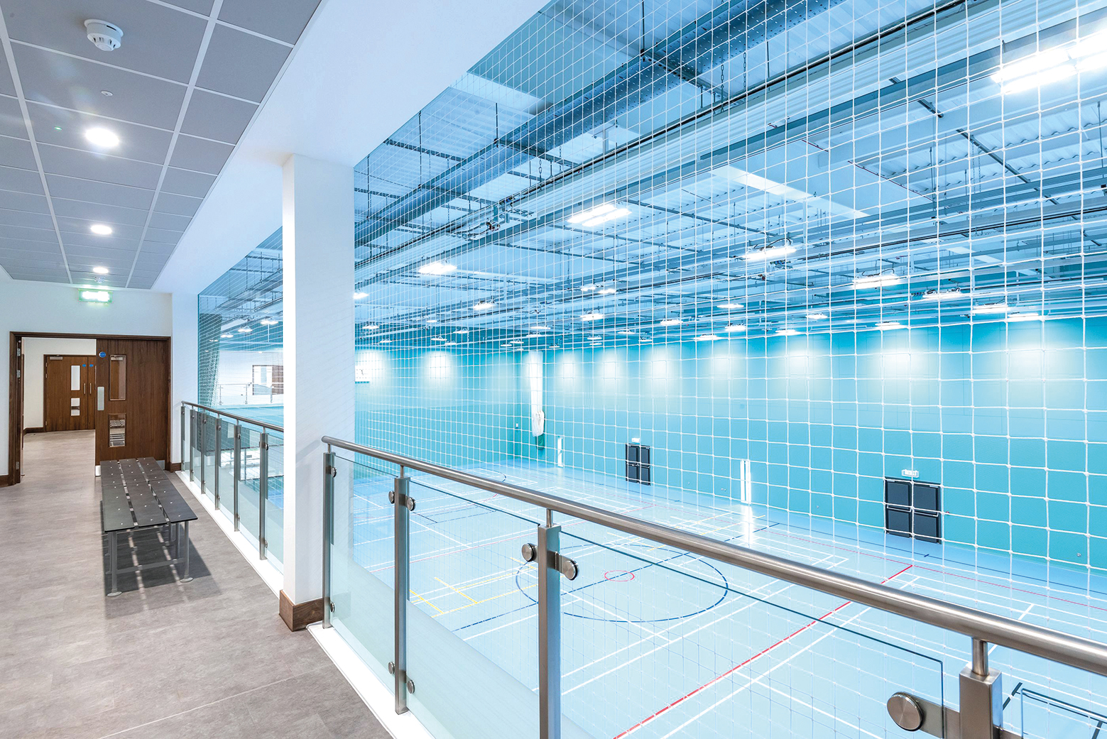 The sports centre building provides a five-court sports hall with facilities for a variety of sports including badminton, futsal and indoor cricket. The building also houses a fully equipped fitness suite, exercise and dance studios, an interactive velo studio, meeting rooms and a café.