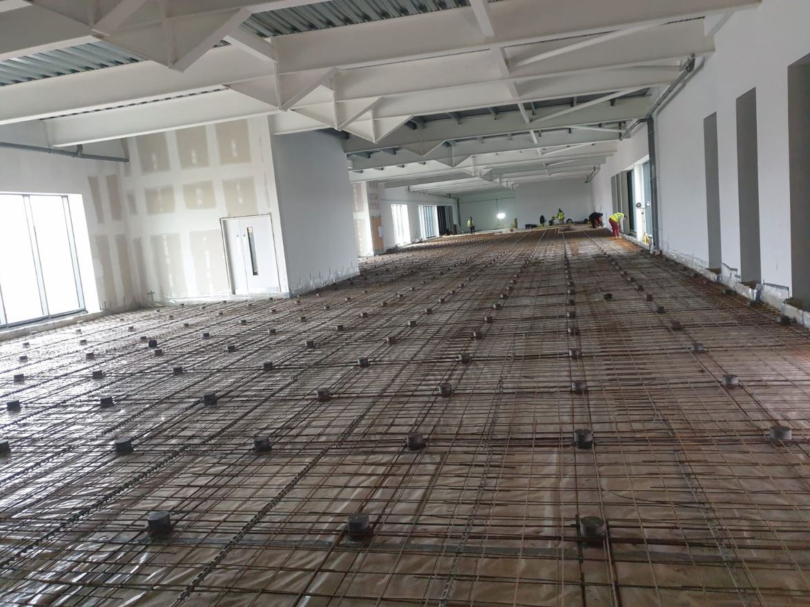 In an ideal world, a floating floor is installed during the construction of the building. On this occasion, the base build contractor had completed the building shell. Pure Gym’s agreement with the developer required the floating floor to be installed before the fit out contractor came to site. As the structure was already complete, the building maintenance team removed the first floor window allowing the materials and equipment to be craned lifted to the first floor, including 5m long sheets of reinforced mesh. The installation of the 800sq m floating floor then got underway and was completed in just three weeks. Whether you are converting an office block to a gym or building a new facility, it’s almost inevitable you will need to involve engineers with expertise in vibration isolation in your project. For a free weights area like that at Pure Gym, a jack-up floating floor with springs is the optimal solution.