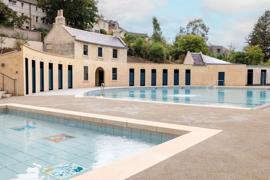 Thousands of supporters from far and wide have since joined the campaign and in 2014 funding was received from the Heritage Lottery Fund and the council to develop designs and a viable business plan for its redevelopment. A further £4.7m of Lottery funding was allocated in 2018, with the trust raising the remaining £1m to cover the total cost of the works; with further funding awarded in 2020 due to increased construction costs encountered during the COVID-19 pandemic. To be operated by Fusion Lifestyle, the development includes a pontoon which will help visitors access the site from the River Avon and will also enable the operator to run a water source heat pump, which will heat the pool to 28 degrees in a more-energy-efficient way than the traditional gas-fired boilers used in most lidos. The work was carried out by Beard Construction alongside Donald Insall Architects and involved the creation of a new crescent-shaped concrete main pool within the footprint of the original structure, which has been preserved beneath it.