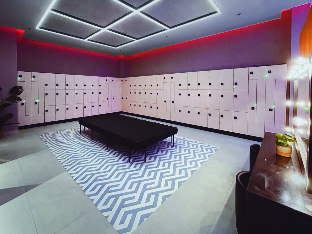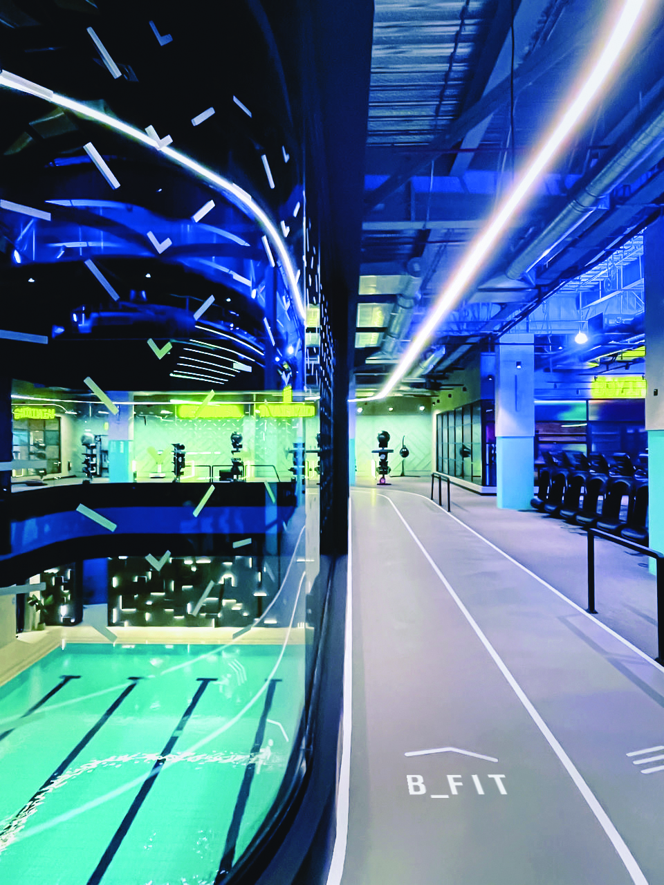 B_FIT Jeddah is the first of many B_FIT gyms planned in KSA and nearby territories bringing a premium yet accessible smart gym experience to the masses using artificial intelligence, virtual reality, Amazon Alexa and IoT innovations. Shed’s brief was to design and re-imagine a next generation fitness training, lifestyle and wellbeing environment. The cliche of 'big box gyms’ was in need of re-inventing, having become stale and one dimensional. The team at Armah Sports were keen to push forward with a new generation of sports venue. The goal was to create a collaborative space to train body and mind, whilst delivering wellness via the latest smart technology available in fitness equipment. “B_FIT is the tech gym of the future and design was of paramount importance to enable the brand to build and grow in new territories as planned. We designed a bold, new brand standard for gyms with B_FIT, one that is instantly recognisable and befitting the innovation of their unique smart gym offer,” says Stringer. The 40,000sq ft facility includes a gym, personal training suites, 25m swimming pool, indoor running track, studios hosting boxing and martial arts classes, group cycling, yoga, pilates and HIIT training, as well as a café, retail and co-working space. Enhanced by the latest smart cardio and strength technology, B_FIT offers all the benefits of a big box gym without falling into gym stereotypes. Incorporating a touchless facial recognition system for entry and virtual reality and augmented reality offerings in the Innovation Lab, gym members can explore new ways to be active and try out simple fitness gamification. B_FIT is also the world’s first health club that utilises Amazon’s Alexa, where members can book classes and review trainers’ schedules and bios through this popular virtual assistant technology. “Designing a fitness environment for a mix of Gen Y Millennials and (post millennial) Gen Zs raised all sorts of questions regarding the way those users seek validity in their fitness goals and motivations in living a healthy life. It’s too simplistic to say that gyms now need to be instagrammable; that happens anyway with high quality designed environments. Our focus for Armah Sports was to develop a design concept for their new fitness brand that felt like a natural extension of the target gym-goer’s life,” explains Stringer.
