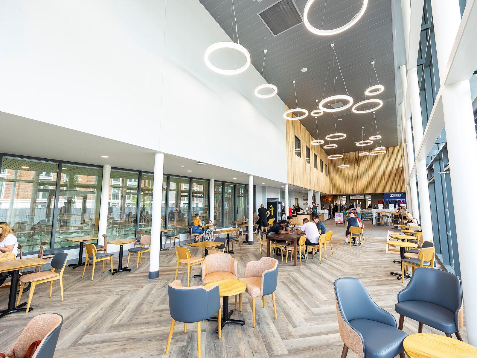 The multi-million-pound Carnival Hub community complex forms part of the second and final phase of the Wokingham town centre regeneration vision to meet the evolving needs and preferences of residents and visitors. The heart of the site, which replaces an ageing 1990s building that was in need of constant repair, brings together a new leisure facility and a new library that is currently undergoing fit-out.